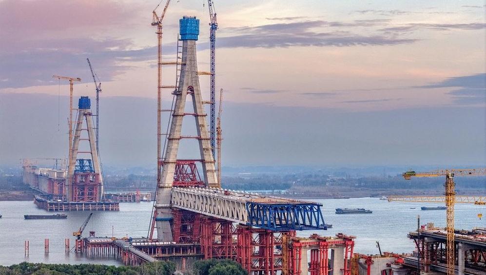 安徽池州长江公铁大桥二标段主体工程已完成80%